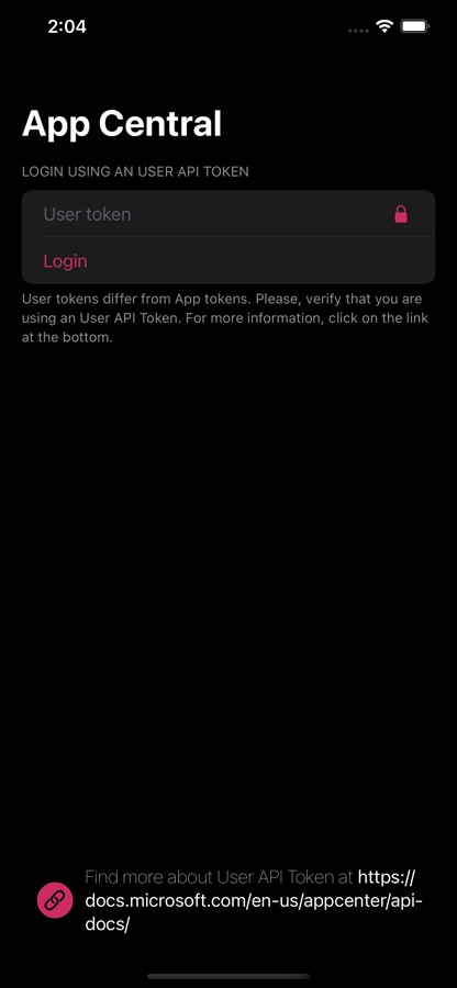 * Login using an API Token. This token will be stored securely in your device Keychain.