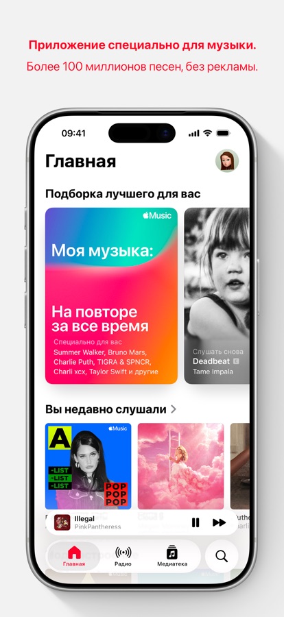 Приложение «Музыка» — это единый музыкальный центр с высочайшим качеством аудио, эксклюзивным дополнительным контентом и уникальными возможностями доступа к любимым артистам. Все это без рекламы.