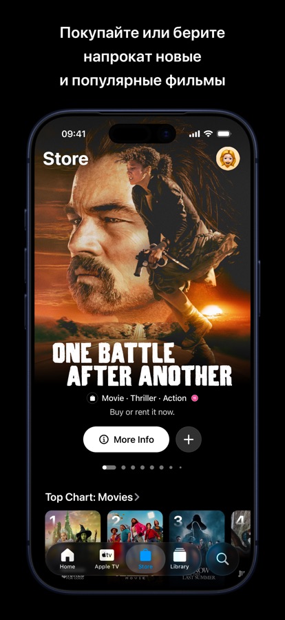 • Смотрите в режиме стриминга сотни фильмов и сериалов Apple Originals — от захватывающих драм и эпической научной фантастики до легких комедий. Среди них — удостоенные премии Emmy® сериалы «Студия», «Разделение», «Утреннее шоу», «Медленные лошади» и «Тед Лассо», мировые хиты, в том числе «Терапия», «Друзья и соседи», «Захваченный рейс» и «Монарх: Наследие монстров», а также оригинальные сериалы Apple Originals, такие как «Ущелье», и рекордный блокбастер «F1».