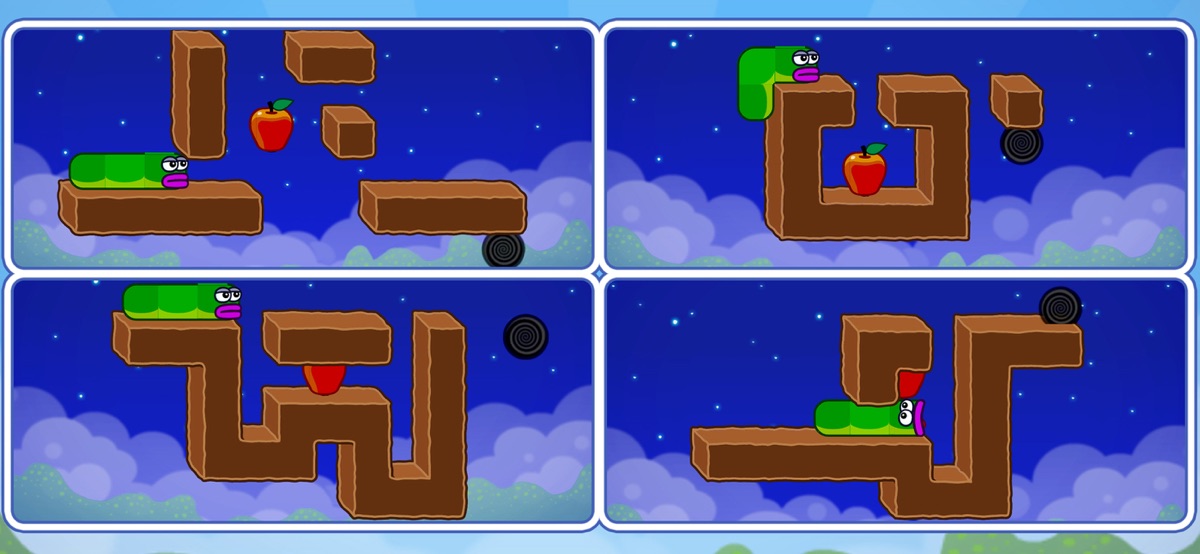 Любите интересные задачки? Собирайте яблоки и тренируйте логику, решая хитрые головоломки в этой увлекательной игре про изворотливого червячка!