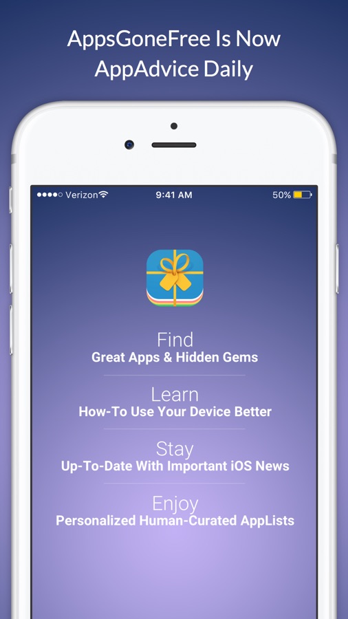 With Daily App Advice you get the best news, accessories, and products for your iOS device & helpful tips from AppAdvice.com experts. This is the flagship app of the popular iOS enthusiast website AppAdvice.com featuring a team of more than 20 iOS journalists since 2008! All the best apps, articles, tips, and advice are neatly packed in a fun to use app.