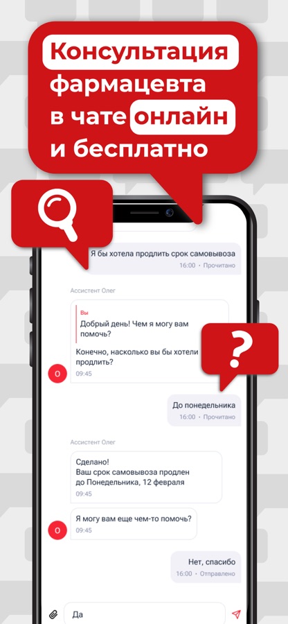 — Круглосуточный чат с провизором для консультации: он поможет заказать таблетки и витамины или подобрать аналоги.