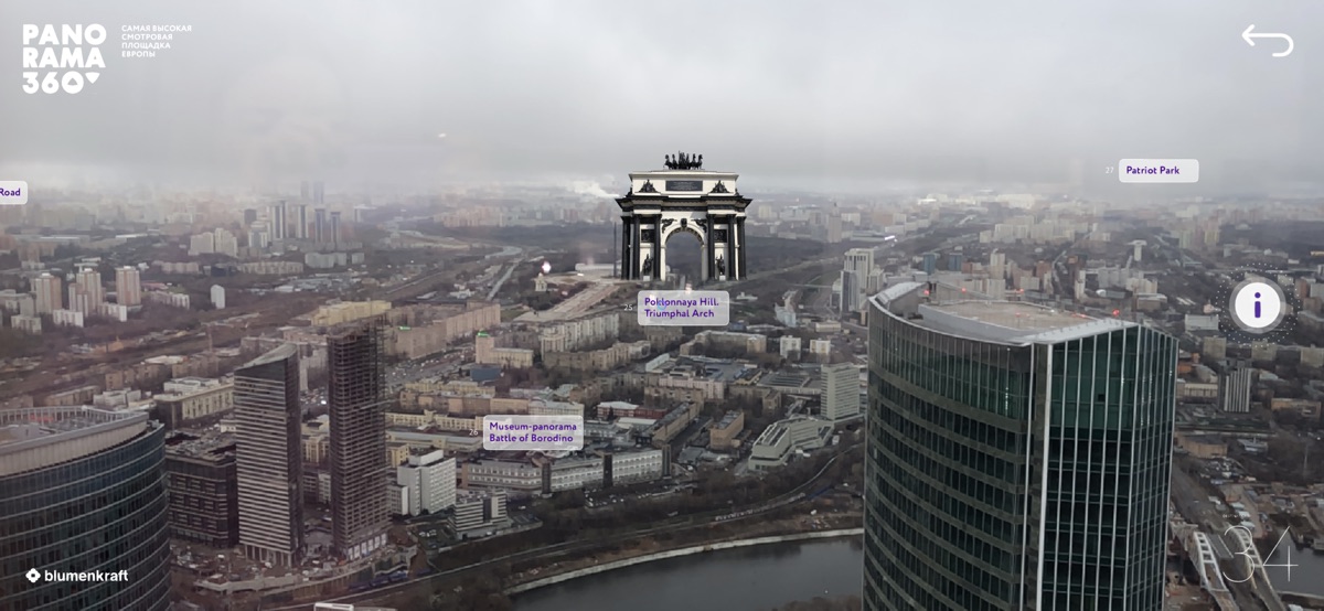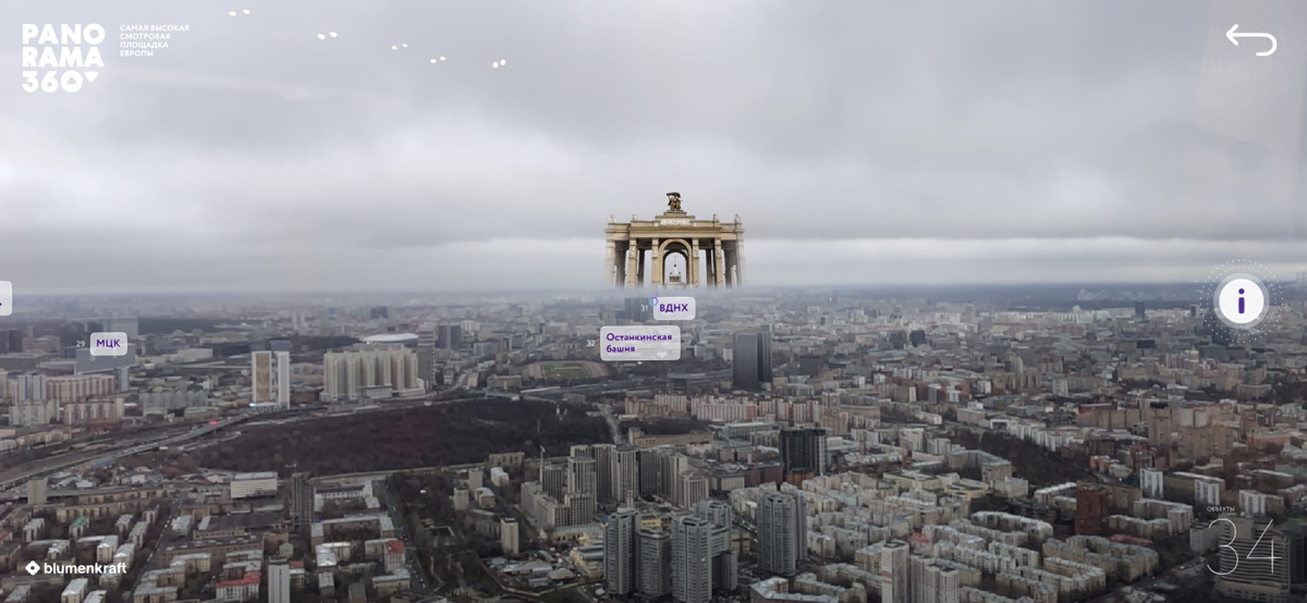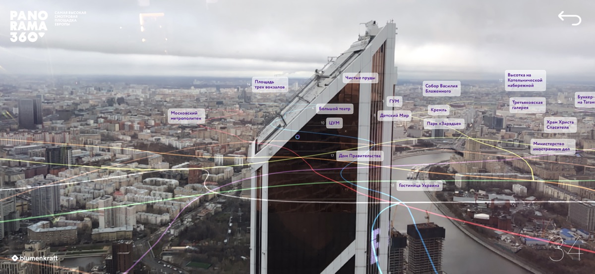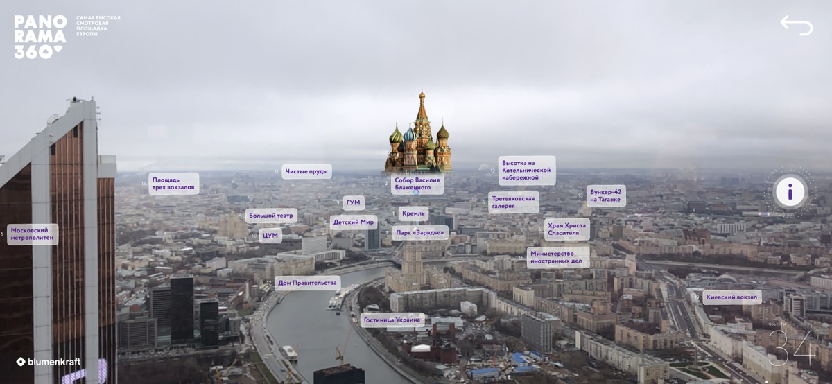 Благодаря виртуальному экскурсоводу, посетитель смотровой площадки сможет изучить многообразие архитектурных объектов, знаковые исторические места, главные достопримечательности Москвы — благодаря технологии дополненной реальности, пользователи узнают город и смогут выбрать маршрут для дальнейшего путешествия.