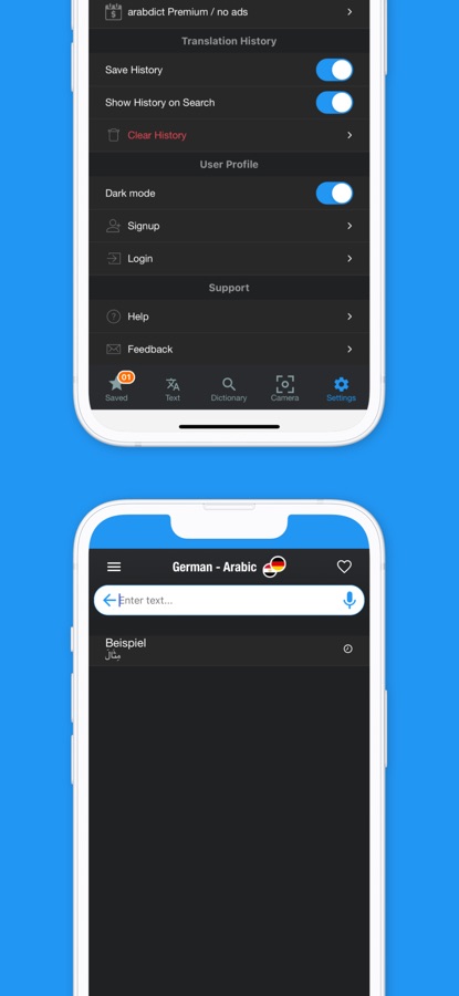 If the app can‘t find a result in the arabdict dictionaries, the integrated text translation service offers an easy and quick translation alternatives.