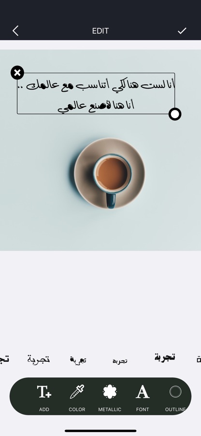 يأتيكم الآن باصداره الجديد بواجهة جميلة و تصميم مميز .يتضمن التطبيق العديد من الخطوط العربية المميزة و المختارة بعناية ، يوفر التطبيق إمكانية الكتابة على الصور و إختيار الخطوط و الألوان، إضافة للملصقات و الخلفيات الجاهزة لعمل أفضل التصاميم .