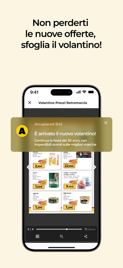 Sfoglia il volantino digitale con tutte le promozioni dei pet store Arcaplanet. Resta aggiornato su offerte esclusive, novità e iniziative solidali. Con il profilo “My Pet” crei la scheda del tuo animale e ricevi suggerimenti su misura.