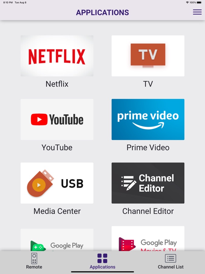 — Keyboard: Allows you to use the keyboard on your iPhone/iPad for TV applications in cases where input is needed.