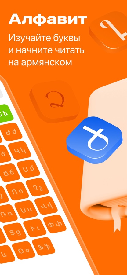Обучение построено на ассоциациях. С их помощью проще запомнить 39 букв армянского алфавита.