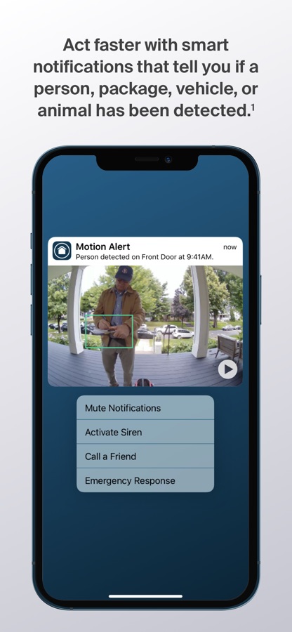 See important details from your home security camera system with up to 4K resolution, 12X zoom image capabilities, and color night vision. When motion is detected, receive interactive notifications on your phone and watch an animated preview, call a friend, activate a siren, or initiate Emergency Response.*
