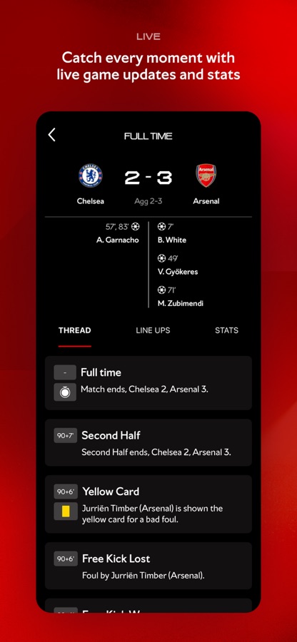 -Keep on top of all the action with instant notifications, match updates, highlights and stats across all competitions in our Match Centre.