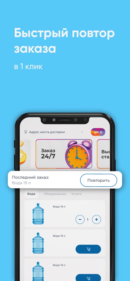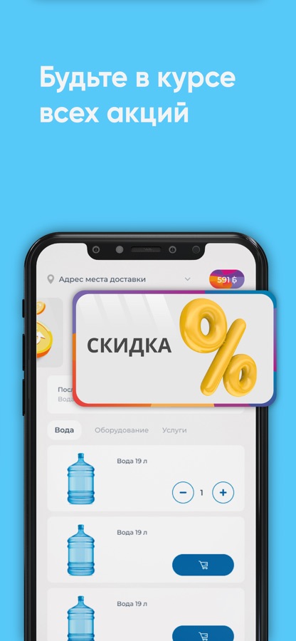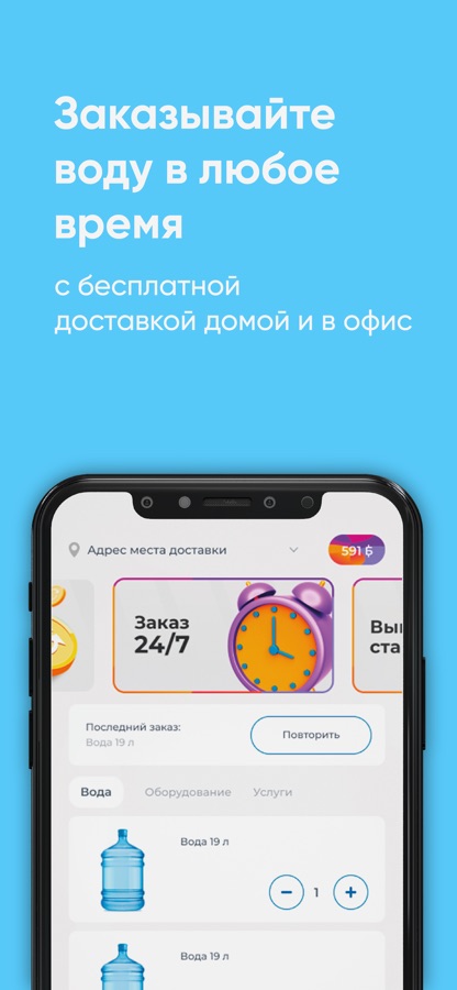 Скачайте бесплатное приложение на телефон и заказывайте чистую воду в удобное время!