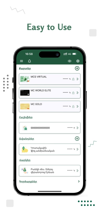 Artsakhbank Mobile is a mobile application for managing your finances anywhere in the world 24/7.