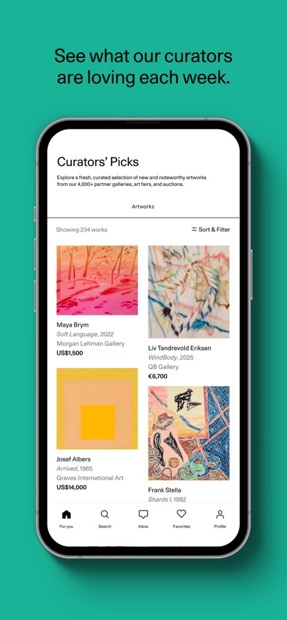 • Follow artists and save works to build a personalized art experience that evolves as your taste does.