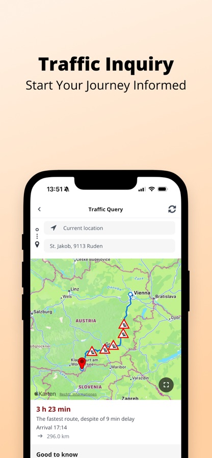 The ASFINAG app provides you with up-to-date information on the traffic situation and weather conditions on the Austrian motorway and expressway network.