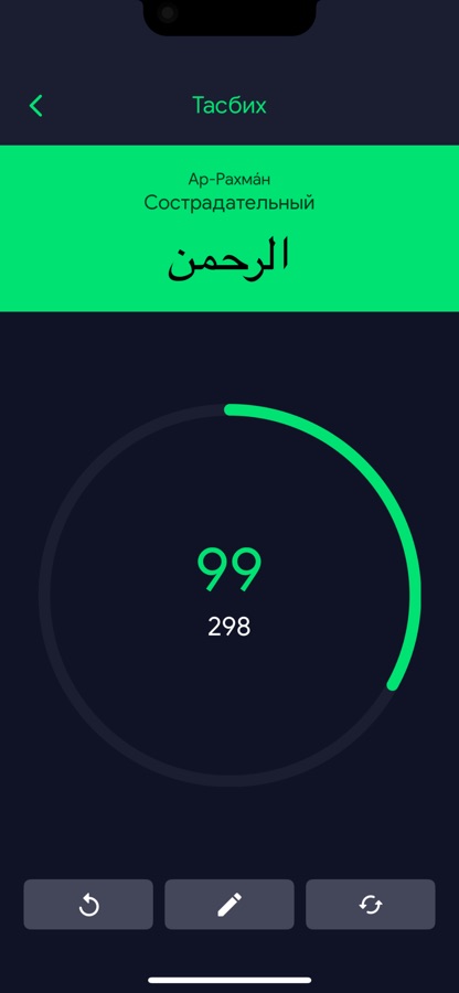 Это очень легко читать зикр 99 именам Аллаха с умным тасбихом в приложении Асмаул Хусна. Счетчик тасбиха предлагает специальные возможности, например, звуковые и вибро- сигналы, а также полезные функции, например, начальное и целевое значения счетчика. Вы можете выбрать целью счетчика номера зикров Асмаул Хусна (в соответствии со значениями абджад) или вы можете выполнять свободные тасбихи Асмаул Хусна.