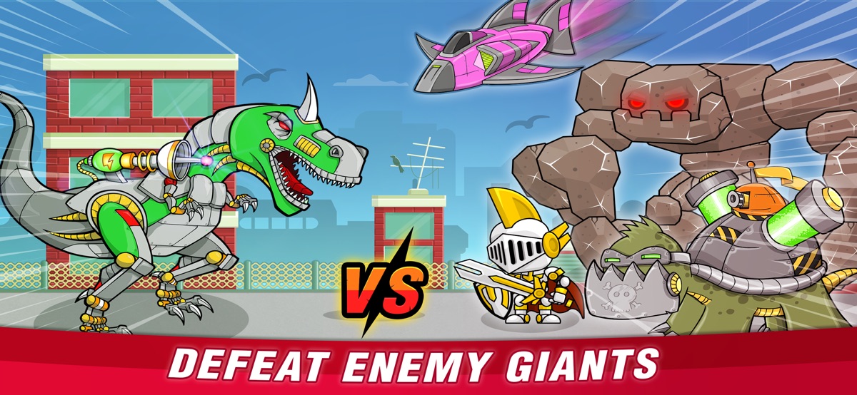 Усиливайте и развивайте своего робота-динозавра, чтобы сделать его еще сильнее.