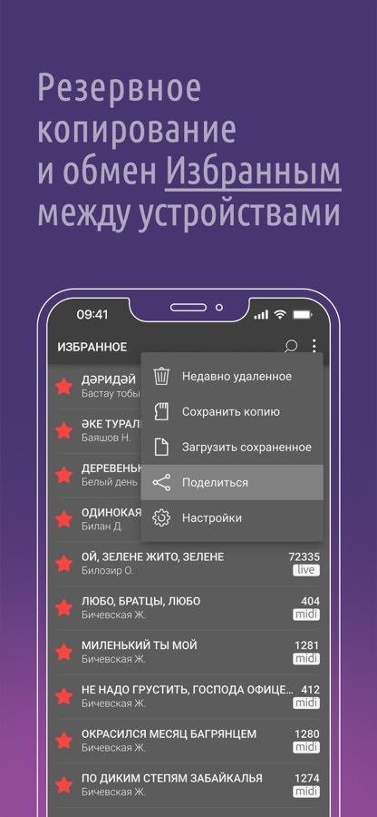 ∙ составление списка избранных песен, синхронизация списка между устройствами;