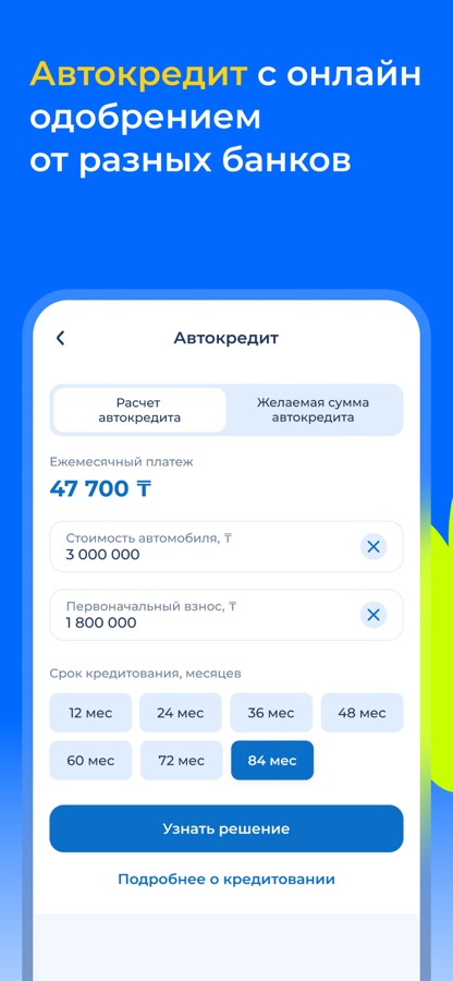 • рассчитать автокредит;