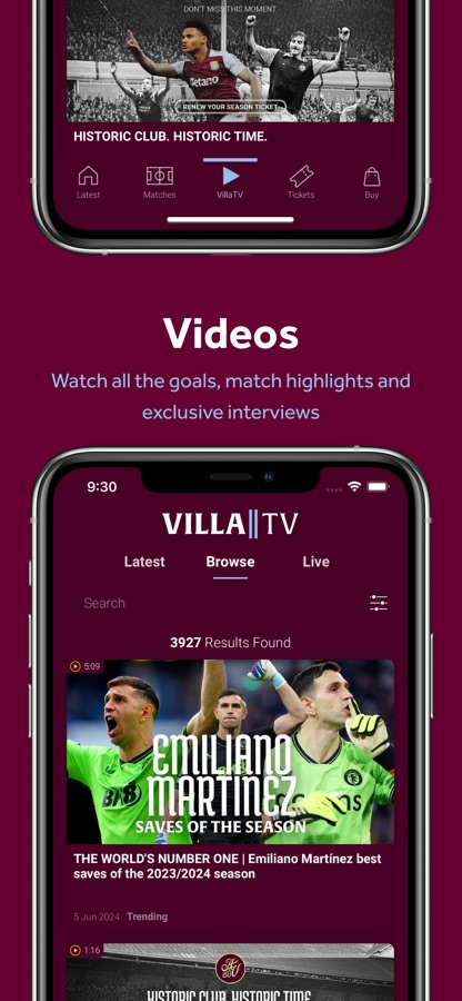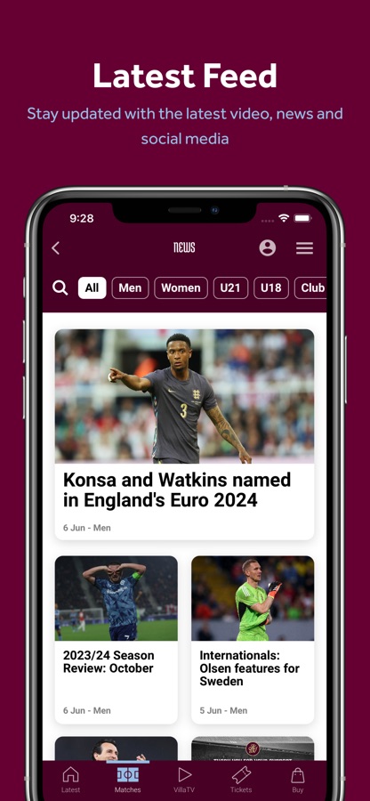 Get all the latest Villa news, interviews, galleries and videos all in one place with the app content feed.
