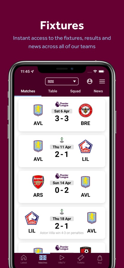 Take Villa with you wherever you go with the official Aston Villa app.
