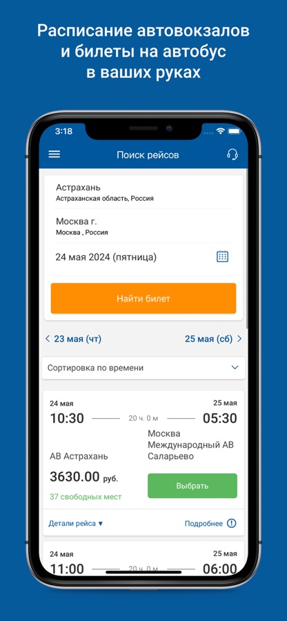 — поиск рейса и просмотр расписания автобусов на конкретную дату