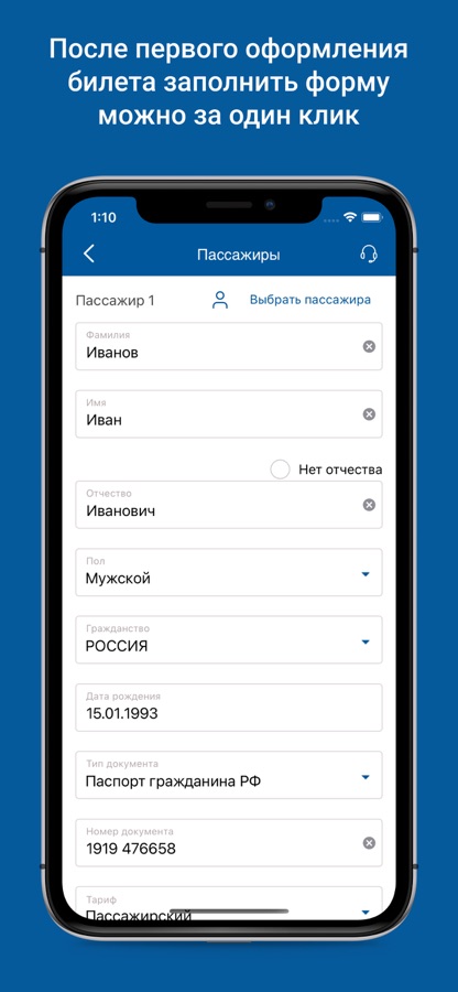 — автоматическая подстановка данных пассажира при последующих покупках электронных билетов