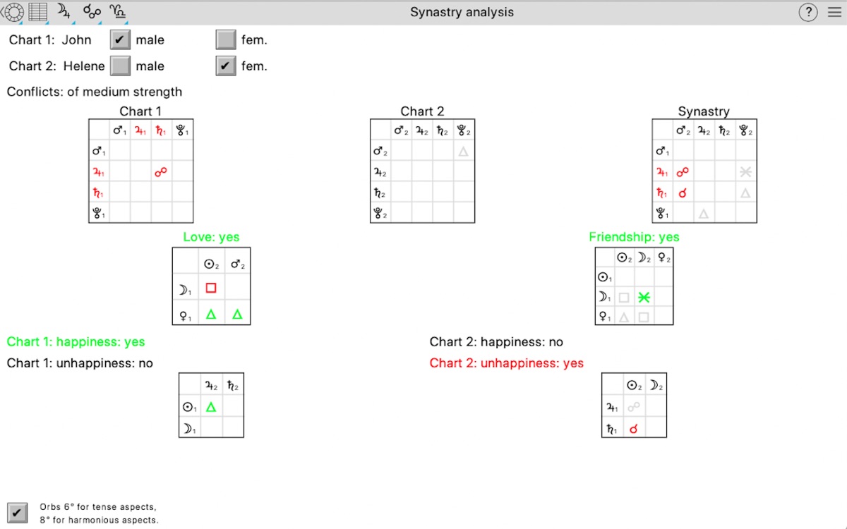 — 19 аспектов, орбы можно установить для одиночной и двойной карты;