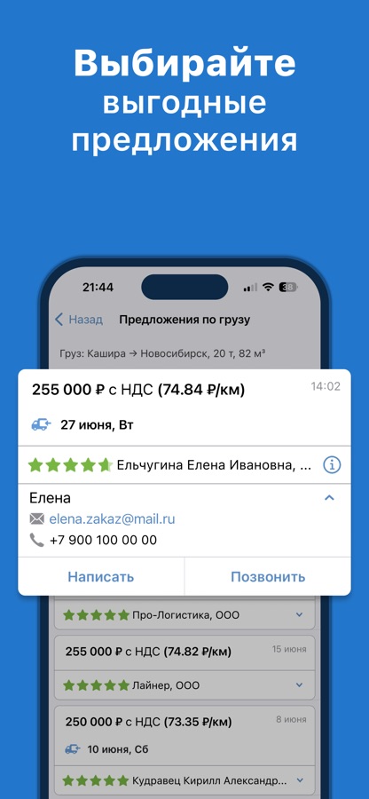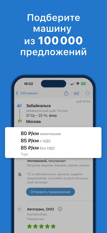 • Добавляйте свой транспорт, чтобы получать предложения напрямую.