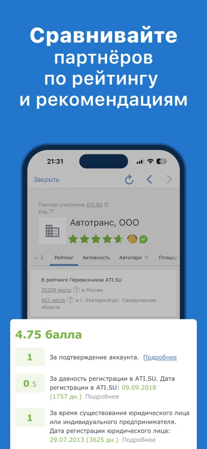 • Оценивайте надежность партнёров по рейтингу и проверкам ATI.SU.