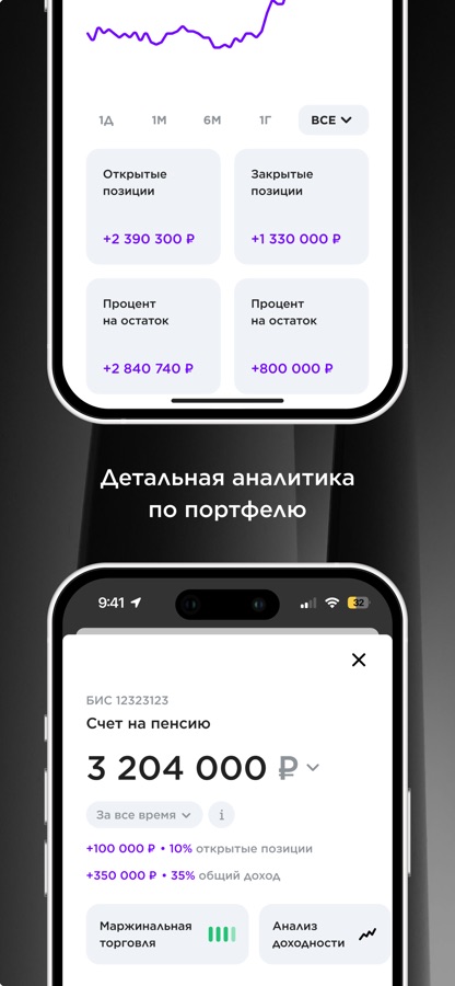 • Витрина: аналитические обзоры, инвестиционные идеи на российском рынке, паи фондов, структурные продукты и страховые решения собраны в одном разделе. Удобный доступ к возможностям и готовым стратегиям.
