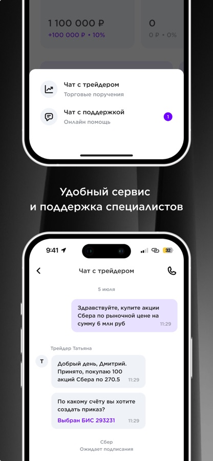 • Чат с трейдером: вы можете реализовать понравившуюся идею в несколько кликов или написать в чат, чтобы трейдер исполнил ваше поручение.