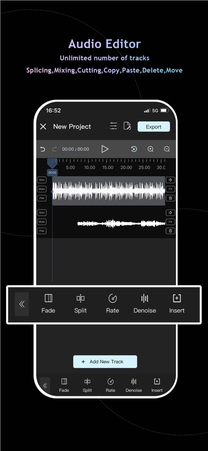 • Multitrack audio editing and mixing, professional jitter quantization and anti-interference filters ensure the sound quality of the audio mixer output and the smoothness of the cut sound boundary.