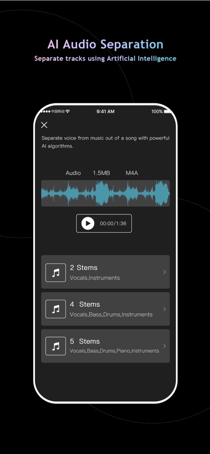• AI powered vocal remover & vocal extractor: extract instruments and vocals from any audio file.