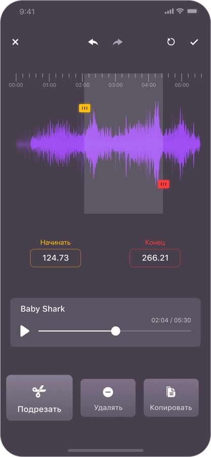 • Приложение для обрезки MP3 позволяет отменить / повторить / отменить изменения