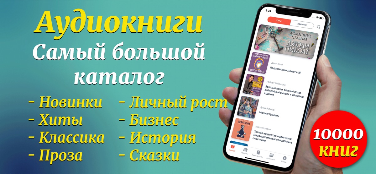 Откройте для себя доступ к тысячам часов самых качественных аудиокниг! Слушайте везде, даже там где нет сети. Скачивайте книги лучших российских и зарубежных авторов.