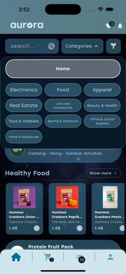 Aurora is a distinctive multivendor ecommerce mobile application.
