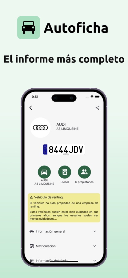 Autoficha te proporciona todos los datos relevantes del vehículo, incluyendo la historia completa de propietarios, bajas, transferencias y matriculaciones, ¡todo en un informe detallado y fácil de entender!