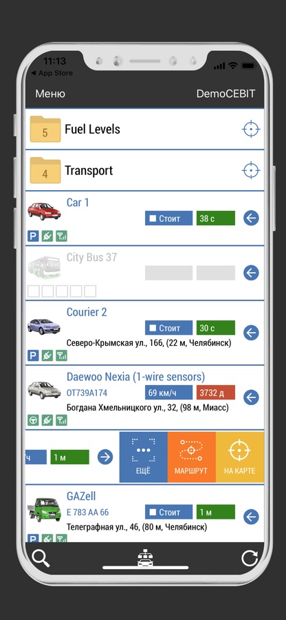 •Просмотр текущего положения всего транспорта / персонала из выбранной папки на карте