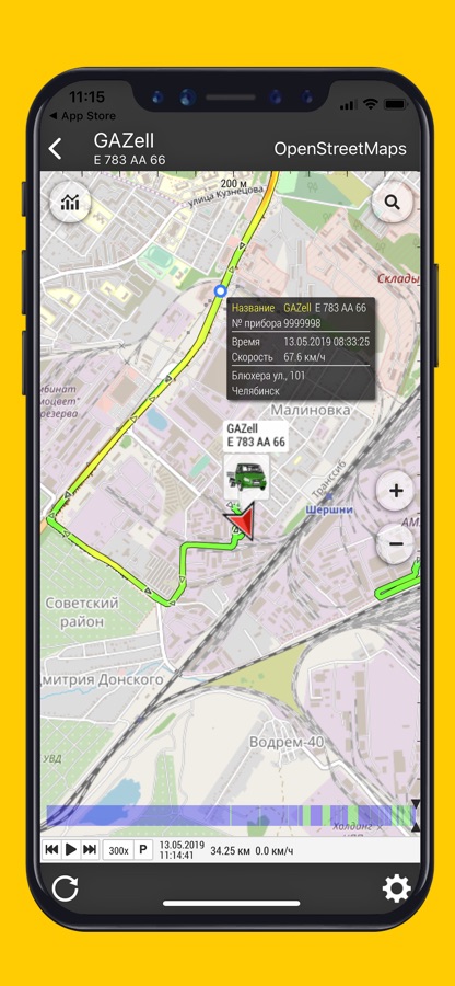•Воспроизведение движения транспортных средств / персонала по карте во встроенном плеере треков
