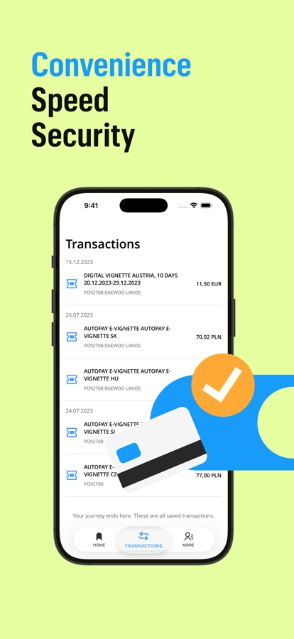An app for paying for vignettes in Austria, Bulgaria, the Czech Republic, Slovakia, Slovenia, Switzerland, and Hungary. Payments for highways A1, A2, A4, and parking in Poland. Hassle-free travel with Autopay.