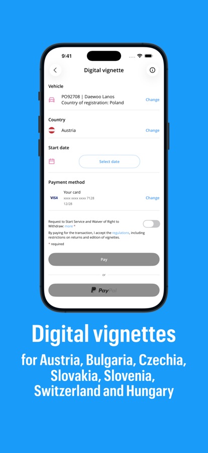 The Autopay app allows you to purchase vignettes for countries such as Austria, Bulgaria, Switzerland, the Czech Republic, Slovakia, Slovenia, and Hungary. Simply log into your account, select the country you’re traveling to, choose the number of days, and confirm the payment. The vignette (in .pdf format) will be sent to your email inbox. You don’t even need to print it—just show it on your phone screen during a potential inspection.
