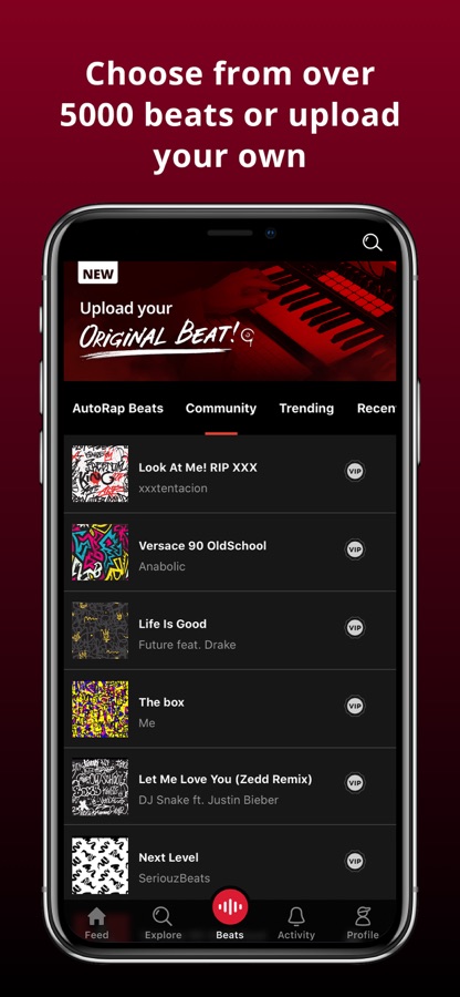 Have an original beat of your own? Upload it to AutoRap to seamlessly lay your verses on top. You can even encourage other rappers from the community to try it out and create something with your beat. Hundreds of other producers are already on the app collaborating on new beats. Join them!