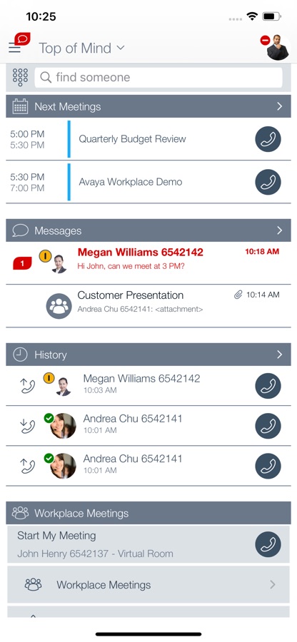 Avaya Workplace integrates your iPhone and iPad with your office Avaya Aura or IP Office communications environment and delivers mobile voice & video VoIP calling, rich conferencing, instant messaging, presence, visual voicemail, corporate directory access, call history and more!