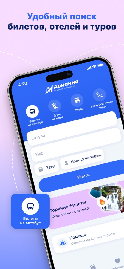 Добро пожаловать в мир бесконечных путешествий! Авианна — ваш надежный путеводитель и помощник в мире самостоятельных путешествий. Забудьте о сложностях поиска и бронирования отелей, авиабилетов или бесконечных поисках места в автобусе — теперь это станет легким и увлекательным процессом.