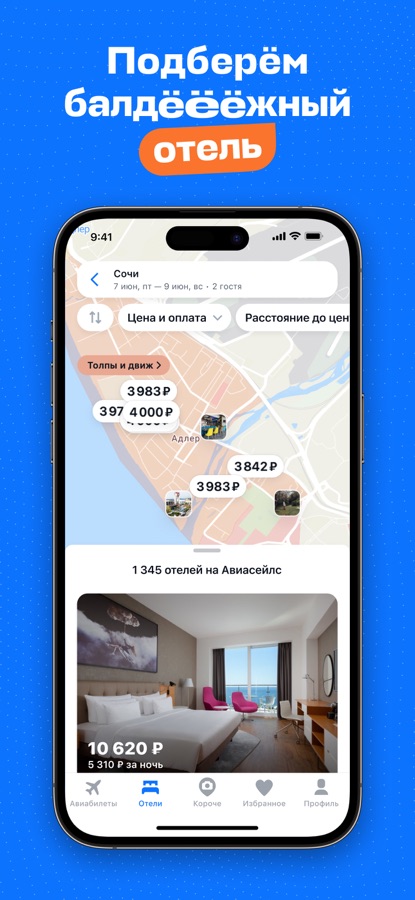 На Авиасейлс можно найти отели и гостиницы, апартаменты, хостелы и бунгало — больше 2,5 млн вариантов по всему миру. А удобные фильтры, отзывы, подборки и подсказки делают поиск и бронирование отелей ещё легче и приятнее.