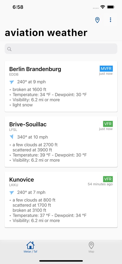 Это приложение для авиационной метеорологии позволяет быстро и надежно получать доступ к локальным и глобальным метеорологическим отчетам для авиации. Сообщения METAR и TAF отображаются в расшифрованном виде, а отдельные станции можно сохранить в списке избранного.