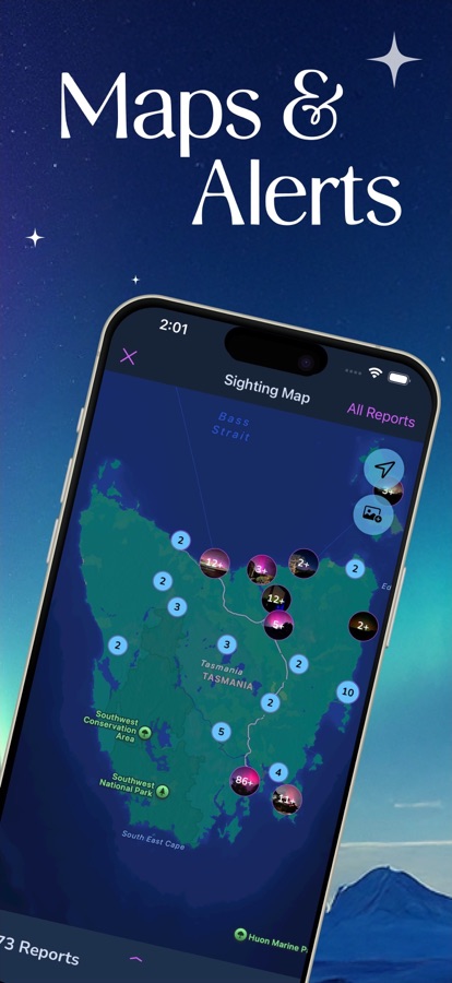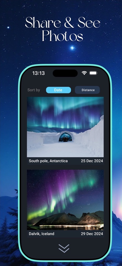 Важно. Видимость Северного сияния зависит от погоды, облачности и светового загрязнения; приложение не может гарантировать наблюдение.