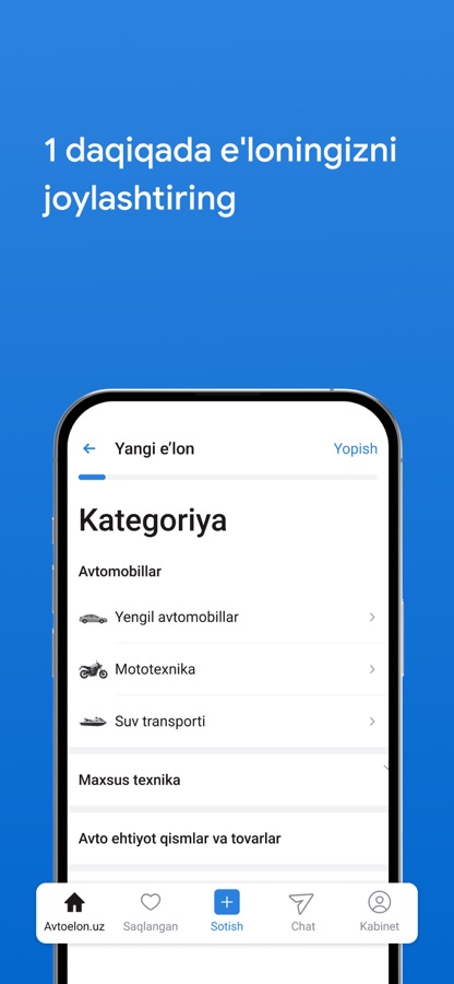 Avtoelon.uz — avtomobil mavzusiga doir e‘lonlarning mobil ilovasi doimo qo‘l ostingizda!