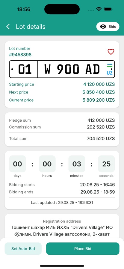 Приложение позволяющее участвовать в аукционе государственных автомобильных номеров.