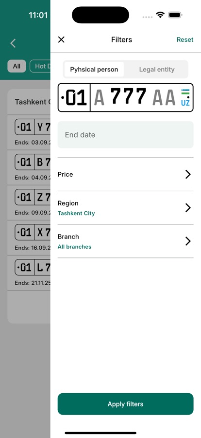 Во исполнение Постановления Кабинета Министров Республики Узбекистан от 31 августа 2017 года № 683 «О совершенствовании порядка государственной регистрации и выдачи государственных регистрационных номерных знаков для автомототранспортных средств» Узбекская республиканская товарно-сырьевая биржа запустила новую торговую платформу по реализации государственных регистрационных номерных знаков для автомототранспортных средств с повышенной ставкой платежа для физических и юридических лиц.